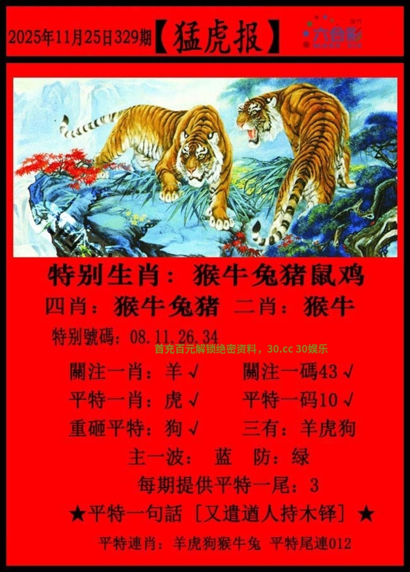| 329期 | 牛狗猪兔蛇马龙 | 开:牛17中 |